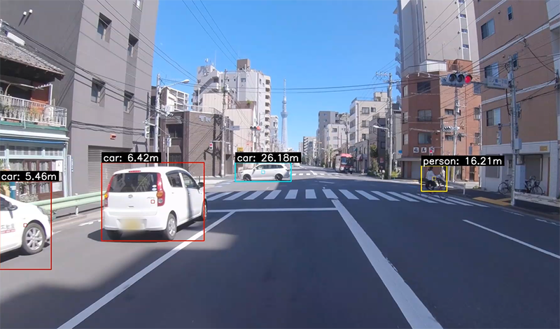 RGBカメラで撮影された1枚の画像から、対象物までの距離を推定するソフトウェアです。追加の測定器を必要とせず、既存の車載カメラをそのまま活用することが可能です。