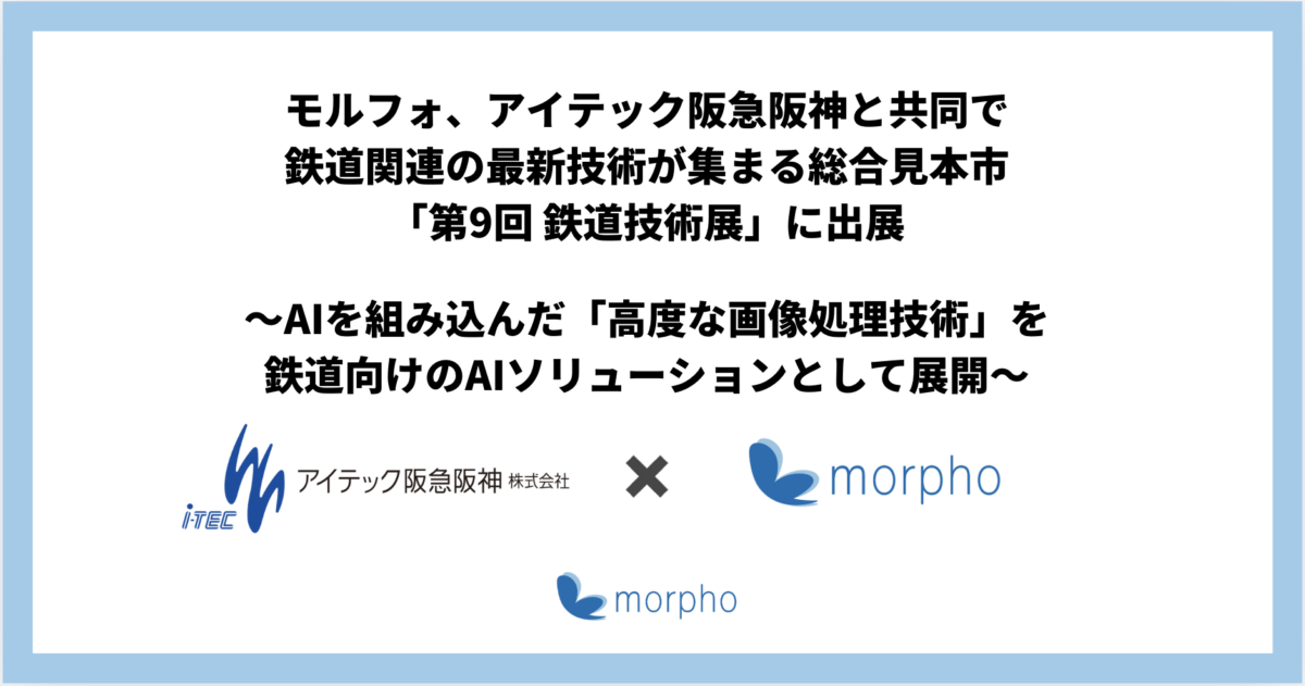 モルフォとアイテック阪急阪神、「第9回鉄道技術展 Mass-Trans Innovation Japan 2025」に共同出展 投稿日 11月 25, 2025 モルフォとアイテック阪急阪神、「第9回鉄道技術展 Mass-Trans Innovation Japan 2025」に共同出展 へのコメントはまだありません